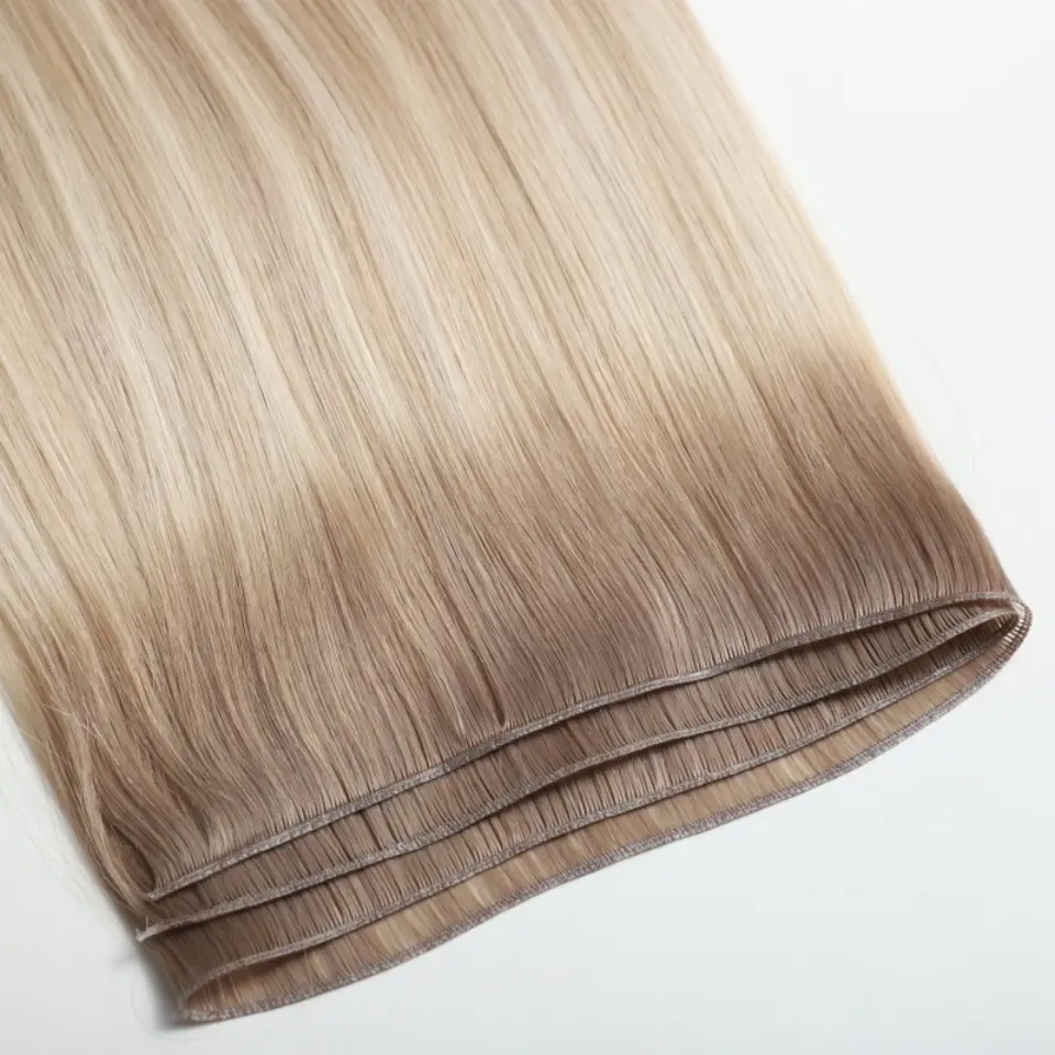 আঠালো পদ্ধতি (টেপ-ইন): যদি গতি মূল হয়, আঠালো বিকল্পের সাথে যান। ওয়েফটের উপরে প্রিমিয়াম টেপ বা আঠালো স্ট্রিপ প্রয়োগ করুন। পরিষ্কার, শুষ্ক প্রাকৃতিক চুলের উপর দৃঢ়ভাবে এটি টিপুন। এটি দ্রুত, তবে মনে রাখবেন, অন্যান্য পদ্ধতির তুলনায় এটির জন্য আরও ঘন ঘন টাচ-আপের প্রয়োজন হবে।