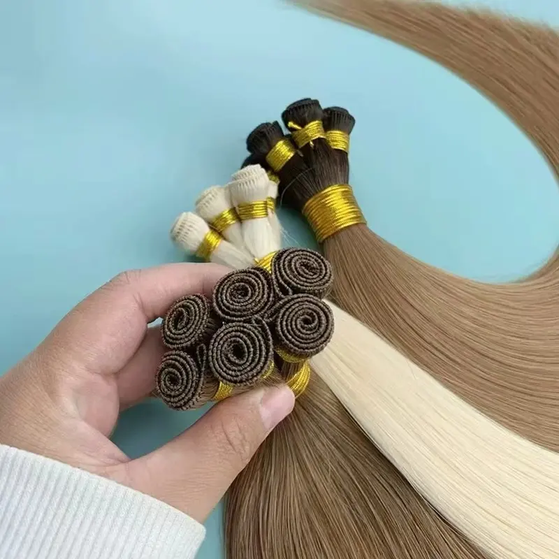 হাত বাঁধা চুলের এক্সটেনশনগুলি সম্পূর্ণ হাতে তৈরি করা হয়, দক্ষ কারিগরদের দ্বারা একত্রে বোনা পৃথক চুলের স্ট্র্যান্ডগুলি। এটি সবচেয়ে পাতলা, সবচেয়ে বিজোড় ওয়েফট তৈরি করে যা আপনি পেতে পারেন—এগুলিকে সূক্ষ্ম বা পাতলা চুলের গ্রাহকদের জন্য নিখুঁত করে তোলে। হস্তনির্মিত বুননের জন্য ধন্যবাদ, ওয়েফটগুলি মাথার ত্বকে সমতল থাকে, একটি প্রাকৃতিক, সনাক্ত করা যায় না।
