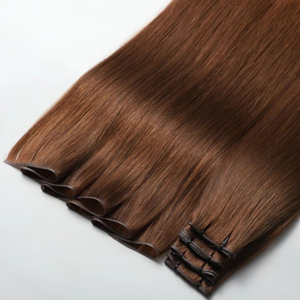 ঐতিহ্যগত wefts হল আসল মেশিনে তৈরি চুলের এক্সটেনশন, যা তাদের স্থায়িত্ব এবং বহুমুখীতার জন্য পরিচিত, একটি ঘন চুলের ব্যান্ডের সাথে। এগুলি আকারে কাটা যেতে পারে এবং ভলিউম এবং দৈর্ঘ্য যোগ করতে ব্যবহার করা যেতে পারে। এগুলি পুঁতি বা সেলাই ব্যবহার করেও সংযুক্ত করা যেতে পারে।