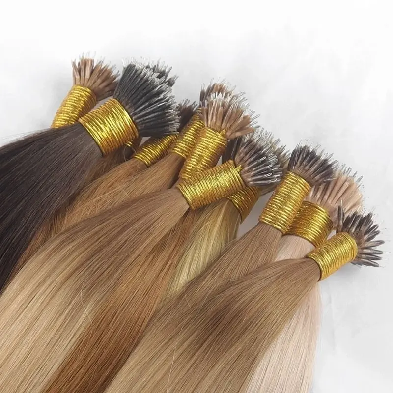 ন্যানো রিংগুলির সাথে ব্যবহৃত চুলের স্ট্র্যান্ডগুলিকে আমরা ন্যানো টিপ হেয়ার এক্সটেনশন বলি। প্রতিটি স্ট্র্যান্ডে একটি শক্তিশালী কেরাটিন টিপ থাকে যা একটি পাতলা ধাতব লুপ সুরক্ষিত করে; একটি স্থির ডগা তৈরি করতে এই লুপটি চেপে বন্ধ করা হয়, যা প্লায়ার দিয়ে আটকানোর আগে রিংটিতে ঢোকানো হয়। প্লাস্টিকের টিপসও একটি বিকল্প—লুম হেয়ার উভয়ই দিতে পারে। কিন্তু ধাতব টিপস আরও জনপ্রিয়, কারণ তারা নতুন ন্যানো রিংগুলিতে প্লাস্টিকের টিপস পুনরায় থ্রেড করার চেয়ে রক্ষণাবেক্ষণের সময় পুনরায় প্রয়োগ করা সহজ করে।