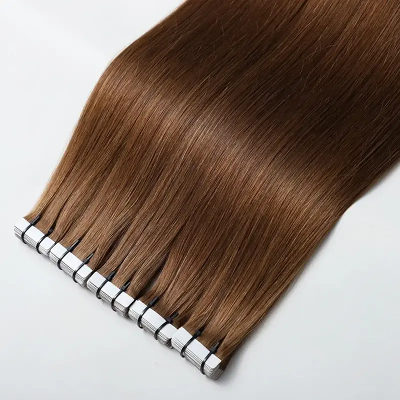নমনীয় স্টাইলিং সম্ভাবনা: প্রাকৃতিক চুলের মতো এই টেপ-ইন এক্সটেনশনগুলিকে স্টাইল করা, রঙ করা এবং চিকিত্সা করা। এই নমনীয়তা ক্লায়েন্টদের তাদের চেহারা অবাধে পরিবর্তন করতে দেয় - দৈর্ঘ্য যোগ করা, ভলিউম বাড়ানো বা নতুন শৈলী চেষ্টা করা।